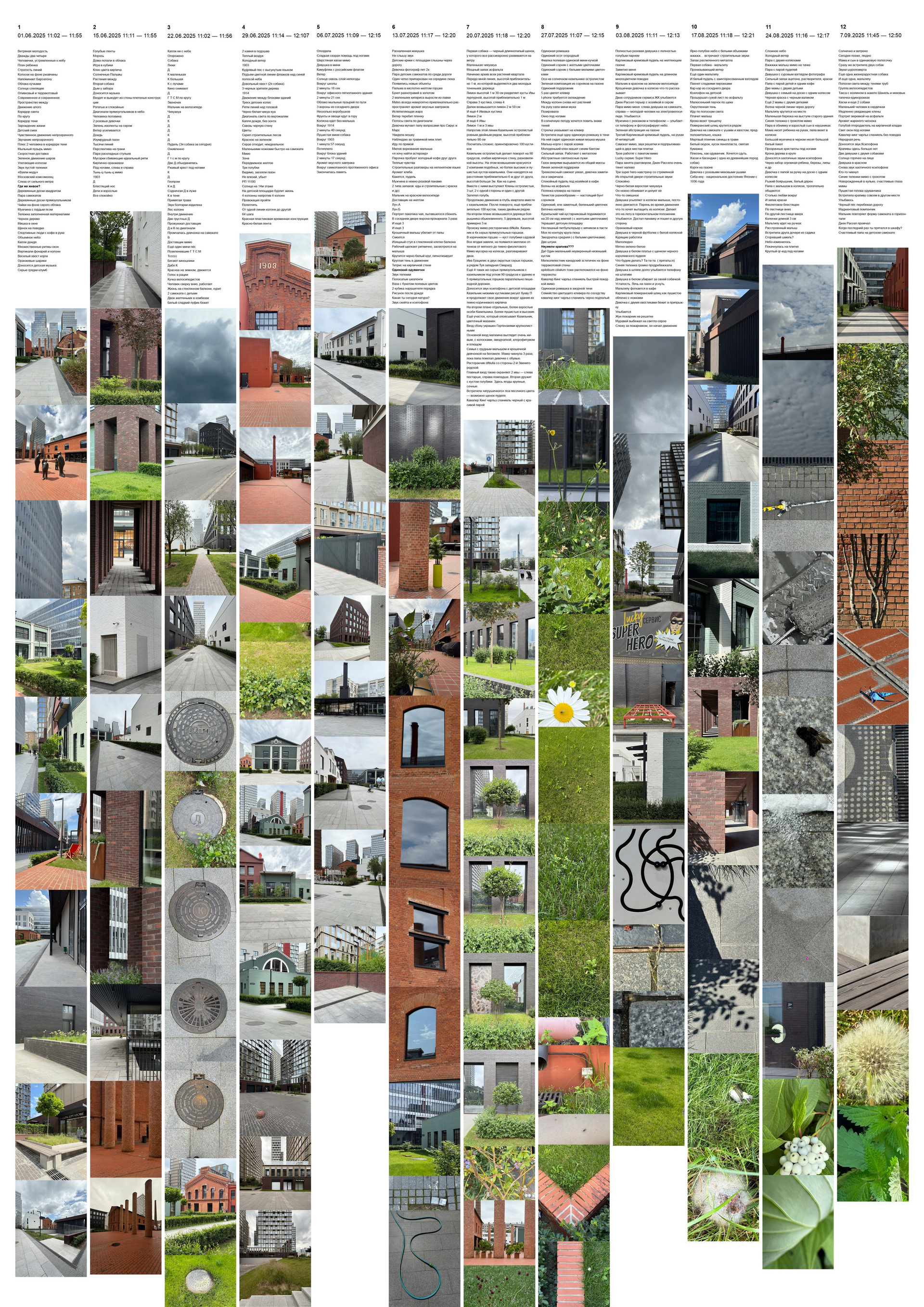 Два месяца я работала над проектом о современном городе. Он состоит из 12 прогулок. 12 воскресений лета с 11 до 12 я гуляла в одном и том же современном квартале. Фиксировала моменты записями и фотографиями, всматривалась, принюхивалась, пыталась объемно прочувствовать место и время. Думала, каким может быть мегаполис будущего, как его улучшить. Но в один момент всё перевернулось. Главной темой стала крапива. Казалось бы — сорняк, просто трава…