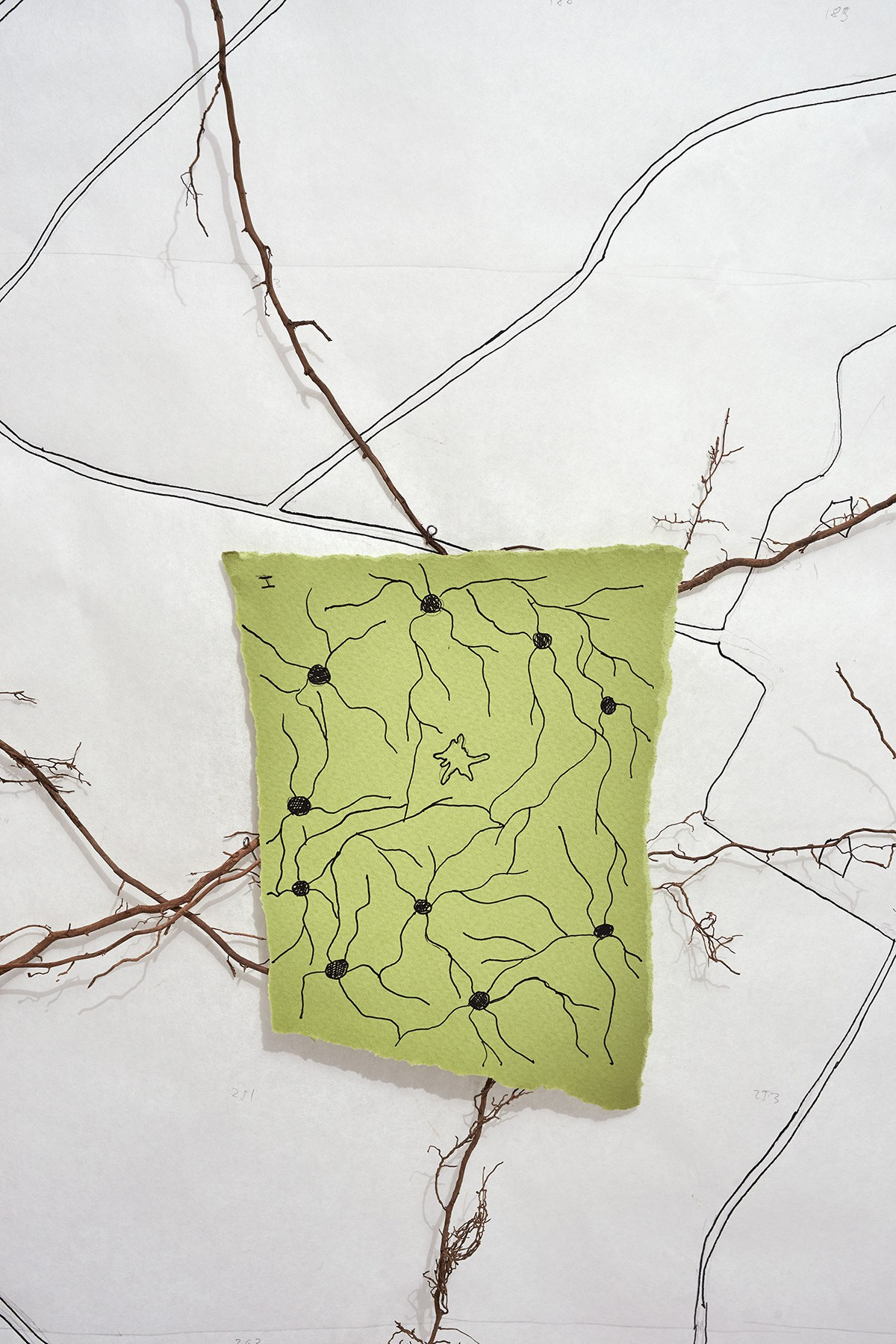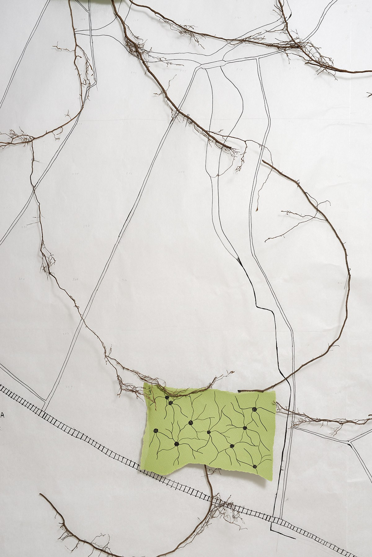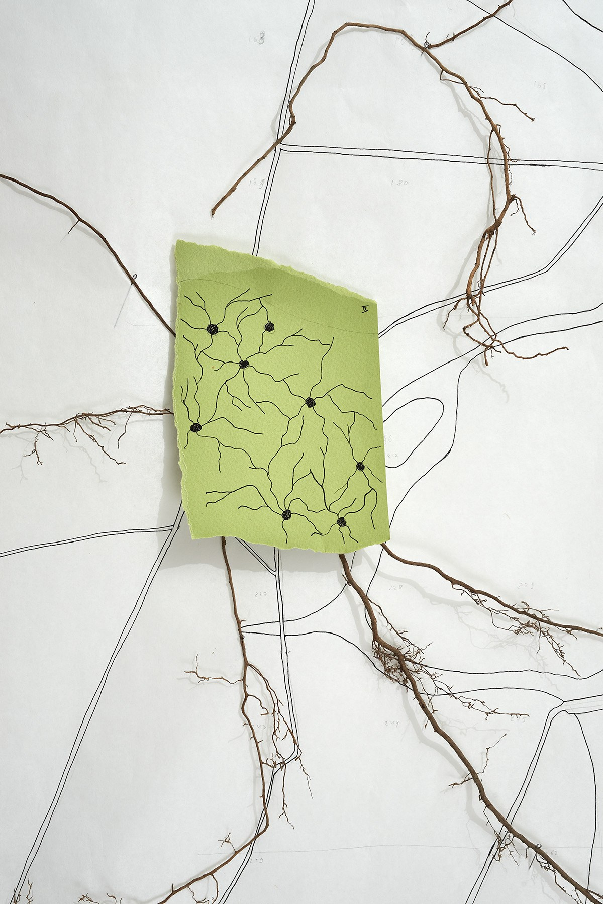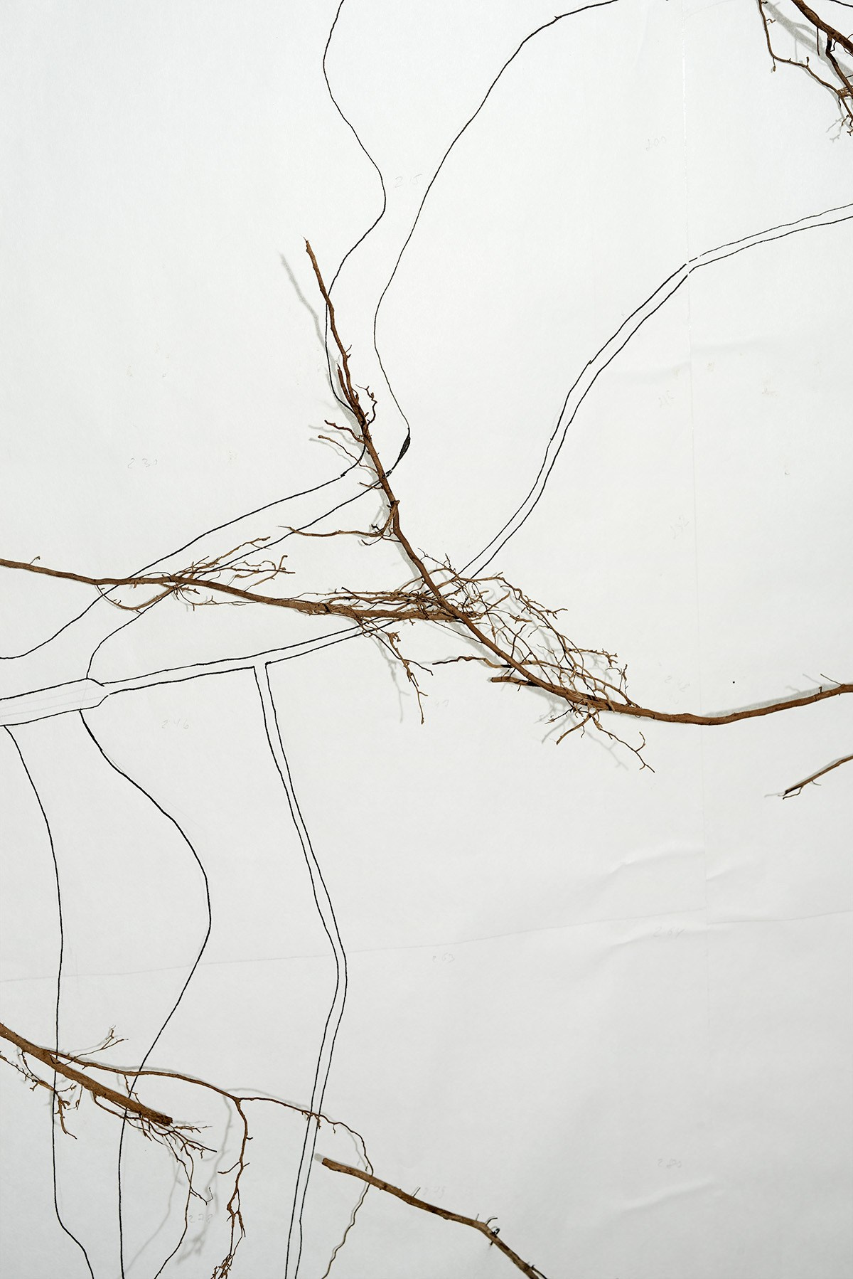 Графика, калька и тушь, корни дубов, бумага для пастели. 128 на 189 см
